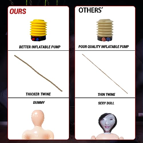 Die Handhabung könnte nicht einfacher sein. Einfach die Pumpe schnappen, die Leiche aufblasen und schon ist die gruselige Atmosphäre perfekt! Und wenn die Nachbarn fragen, warum Sie eine Leiche im Garten haben, können Sie mit einem Augenzwinkern antworten: „Das ist mein neuer Nachbar – er ist etwas schüchtern!“