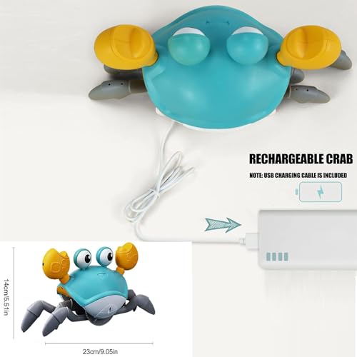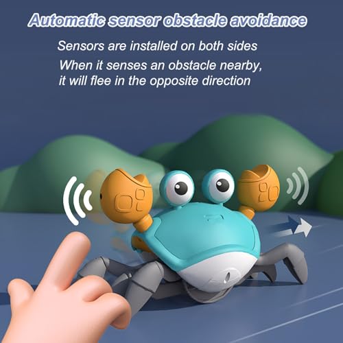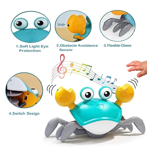 - Sensorische Stimulation: Ausgestattet mit einem integrierten Sensor meistert die Krabbe das Hindernismanagement wie ein Profi. Sie weicht Hindernissen aus und sorgt dafür, dass dein Baby immer in Bewegung bleibt.
